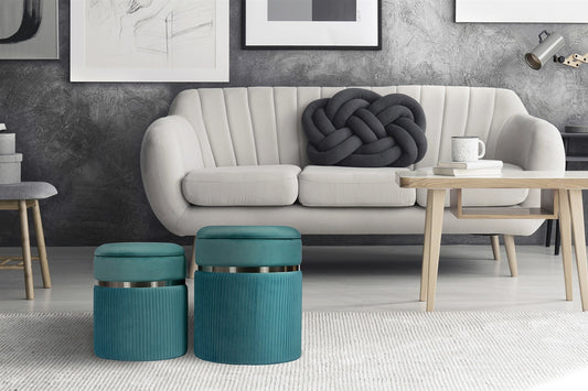 Puf Zora 300 – Sæt Af 2 – Petrol / Sølv