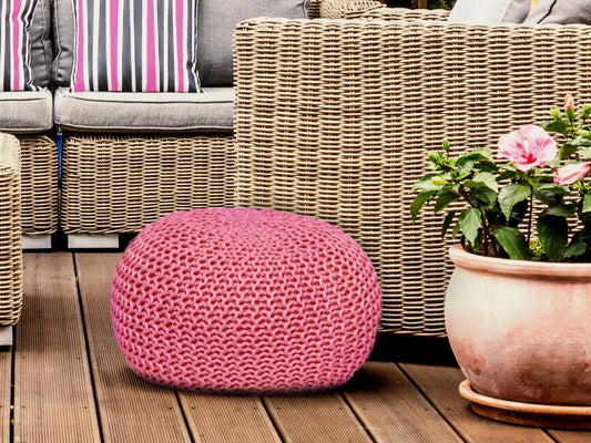 Pouf/knit pouf premium Ø55cm 100% waterproof pink