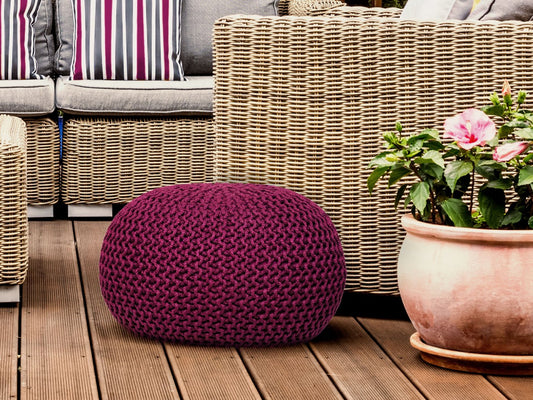 Pouf/knit pouf coarse knit Ø55x37cm purple