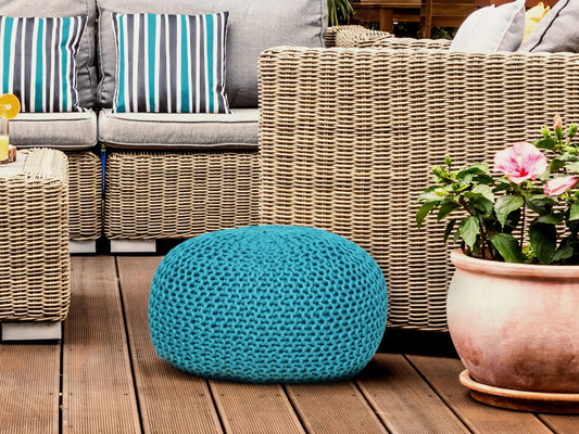 Pouf/knit pouf premium Ø55cm 100% waterproof turquoise
