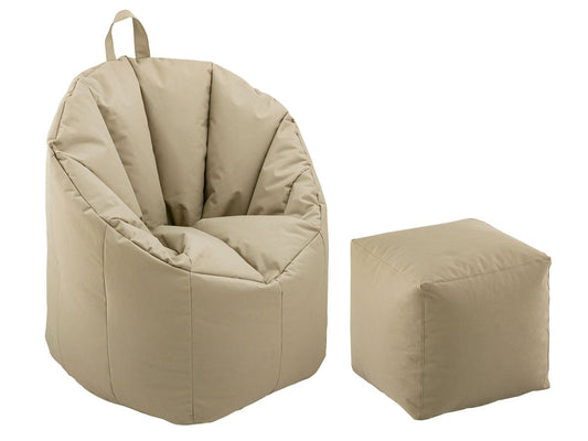 Set of beanbags Ø 70 H 80 cm with stool, lounge chair, gaming chair, Big Bamba, dimensionally stable.