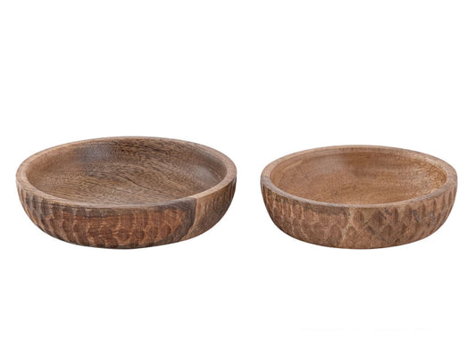 Dekorationsskåle Tik & Tak – 2 stk Runde Træskåle i Massivt Mangotræ