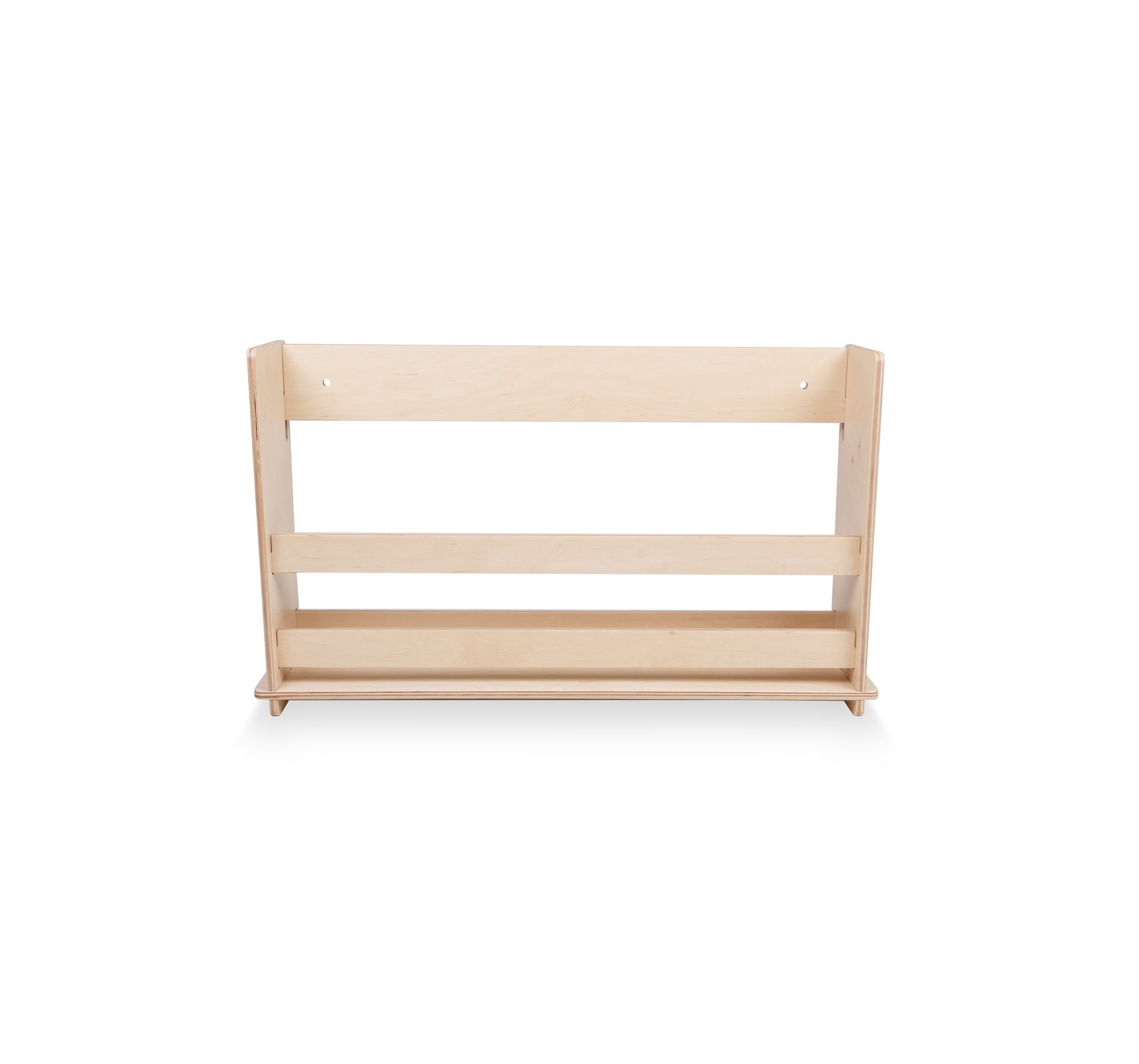 Fin boghylde til væggen. Let og hurtig at samle uden skruer, lavet af FSC-godkendt træ i lakeret finish. Naturfarve.