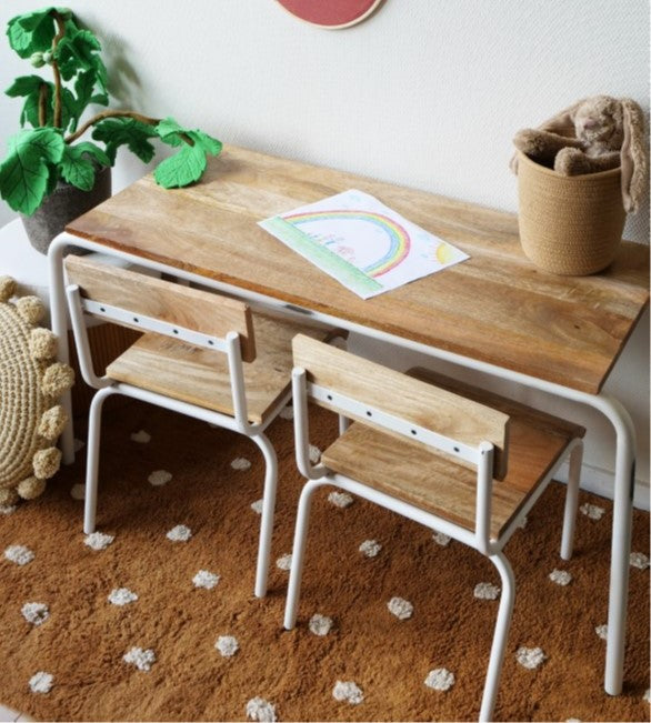 Original stolen er et stilfuldt supplement til (børne)værelset. Stolen har et metalstel og et sæde i mangotræ og giver et retro-look. Matcher perfekt med Original og/eller Roots legebordet fra KidsDepot.