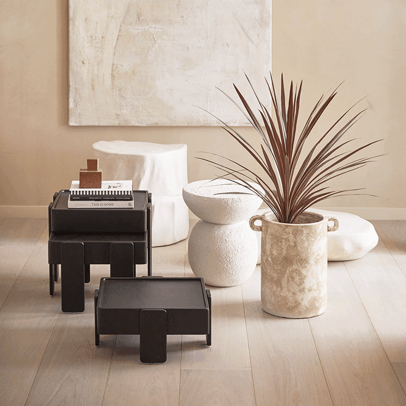 Krukken har en rå, taktil overflade og en organisk, jordnær struktur, der giver den et autentisk og tidløst udtryk. Dens naturlige farvetoner og urbane form gør den ideel til moderne hjem, hvor den tilfører ro, karakter og håndværksmæssig charme.