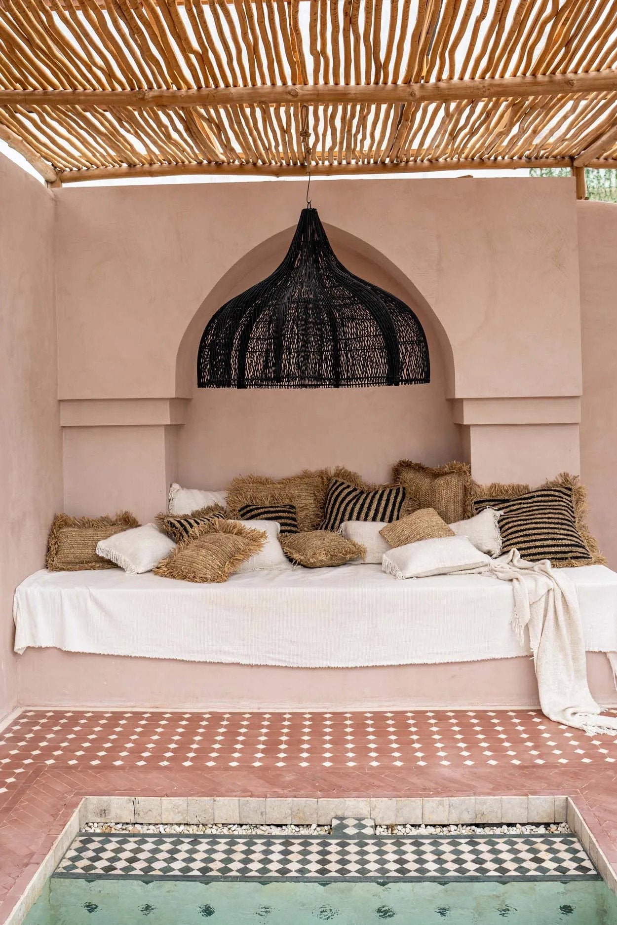 This stunning hanging lamp made of rattan has an extraordinary shape with its beautiful boho style. An extraordinary decorative hanging lamp that will suit any indoor or outdoor covered space. A large impressive and eye-catching lamp!