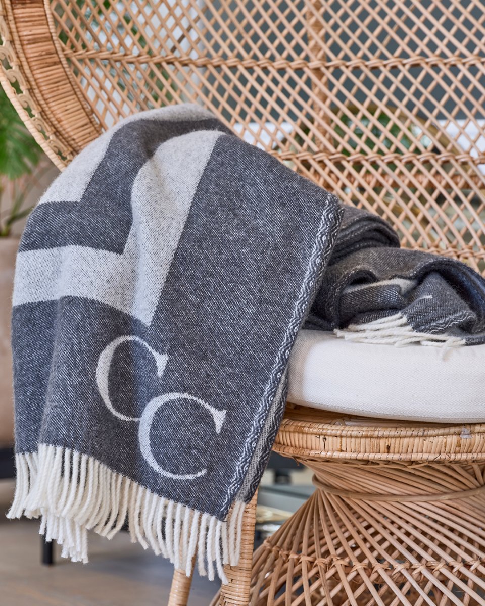 Et luksuriøst tæppe i new zealandsk uld, der er blødere end almindelig uld. Tæppet er vendbart, udsmykket med et monogram fra Classic Collection.